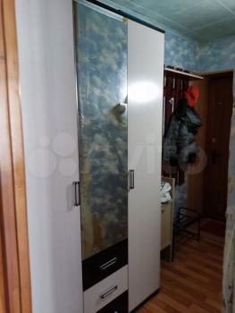 В комнате установлены шкафы для хранения вещей, диван и кресло (раскладываются). Санузел совмещённый, оснащён ванной. Кухня оборудована плитой и шкафами для хранения.