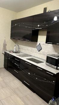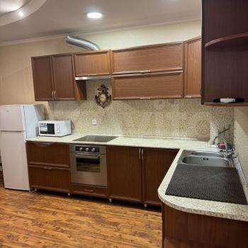 В квартире есть всё необходимое для проживания. Полностью оборудованная кухня: кухонный гарнитур с посудой, холодильник, микроволновка, электрический духовой шкаф, электрочайник, стол, стулья.