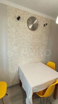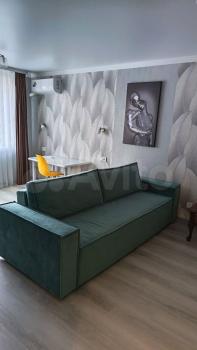 Квартира: просторная комната 23 кв. м. с широким балконом, большая кухня 10 кв.м. с новой мебелью и техникой (плита газовая, духовка электрическая, большой холодильник, вытяжка), санузел с полноразмерной ванной и стиральной машиной, в прихожей шкаф-купе. Кондиционер в комнате. На балконе садовая мебель для отдыха летом.