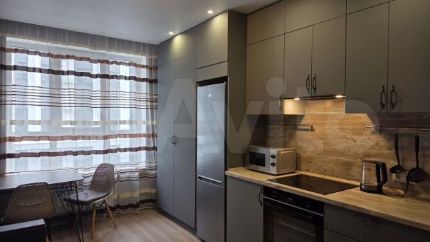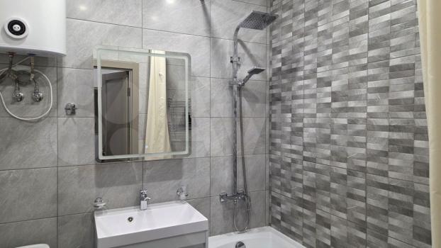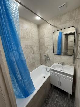 В квартире выполнен евроремонт, что создаёт комфорт и уют. На кухне и в комнате есть вся необходимая мебель. Из техники: холодильник, стиральная машина, кондиционер. Ванная комната оборудована душевой кабиной. Для удобства подключён интернет.
