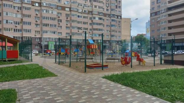 Во дворе дома каток и детские площадки.
