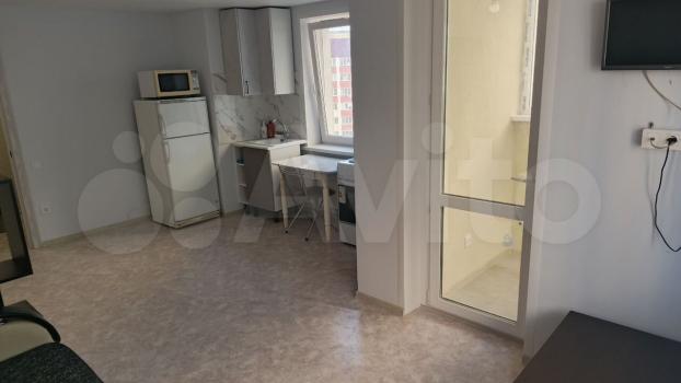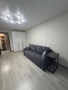 В квартире выполнен косметический ремонт. Просторная лоджия с видом на город. В комнате установлен шкаф-купе, а также имеется необходимая мебель: диван, стол и стулья. Из бытовой техники — холодильник, стиральная машина и микроволновая печь.