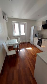 Квартира укомплектова всем необходимым для комфортного длительного проживания. В квартире проведена детальная, тщательная, генеральная уборка. Мебель вся новая. Техника- кондиционеры в кухне и жилой комнате, холодильник, варочная панель, вытяжка, духовой шкаф, посудомоечная машина, микроволновка, чайник, стиральная машина, телевизор, пылесос, утюг, гладильная доска. Наличие большой лоджии добавляет дополнительное место для отдыха.