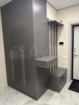 ?В коридоре установлен большой шкаф длиной 3 метра и отдельная гардеробная для хранения вещей и детской коляски.