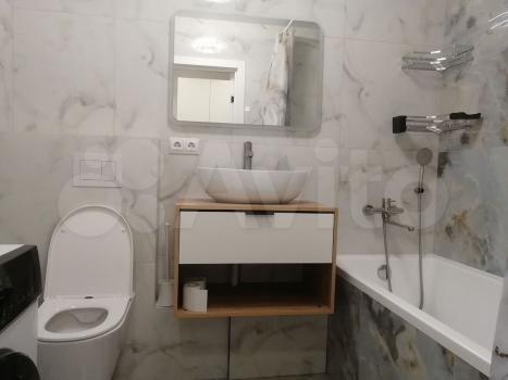 Санузел совмещенный, оборудован ванной и стиральной машиной. В кухне предусмотрены все необходимые элементы для комфортного проживания.
