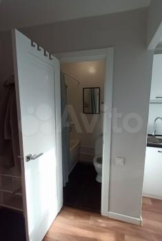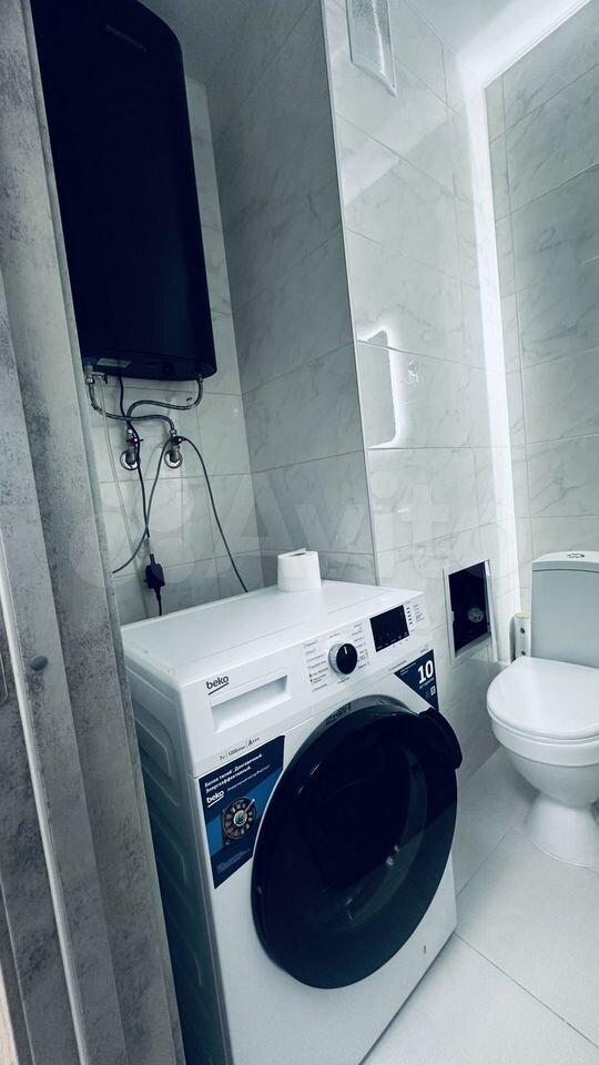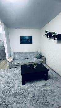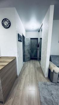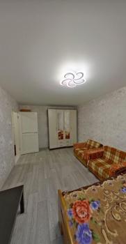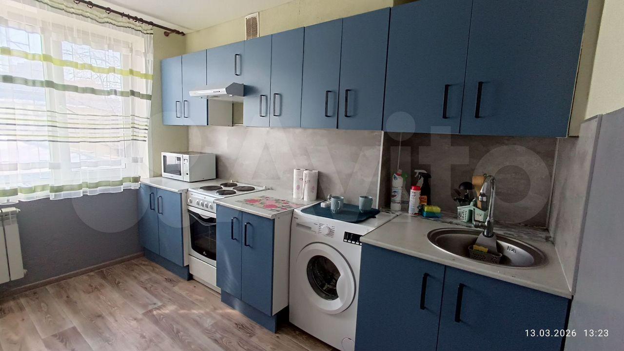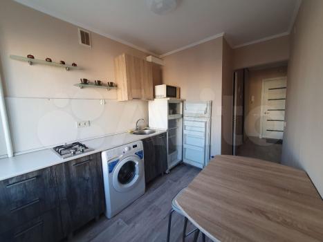 В квартире выполнен косметический ремонт. Просторная комната оборудована диваном и вместительным шкафом. Кухня светлая и функциональная, оснащена холодильником, микроволновой печью и стиральной машиной. Санузел совмещенный, оформлен плиткой.