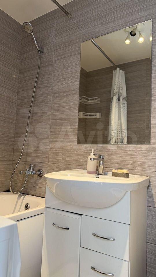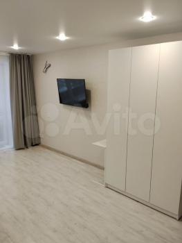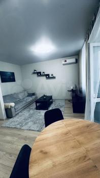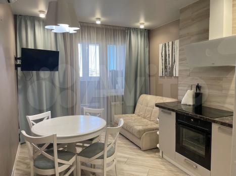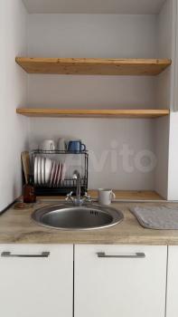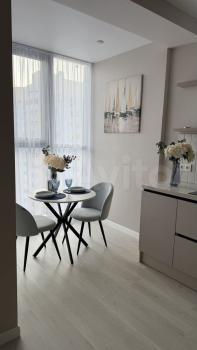Квартира: просторная комната 23 кв. м. с широким балконом, большая кухня 10 кв.м. с новой мебелью и техникой (плита газовая, духовка электрическая, большой холодильник, вытяжка), санузел с полноразмерной ванной и стиральной машиной, в прихожей шкаф-купе. Кондиционер в комнате. На балконе садовая мебель для отдыха летом.