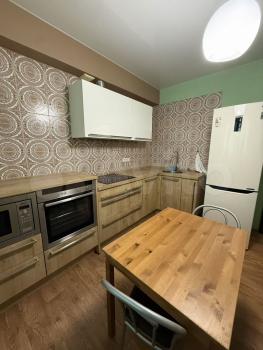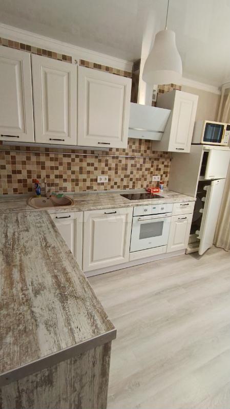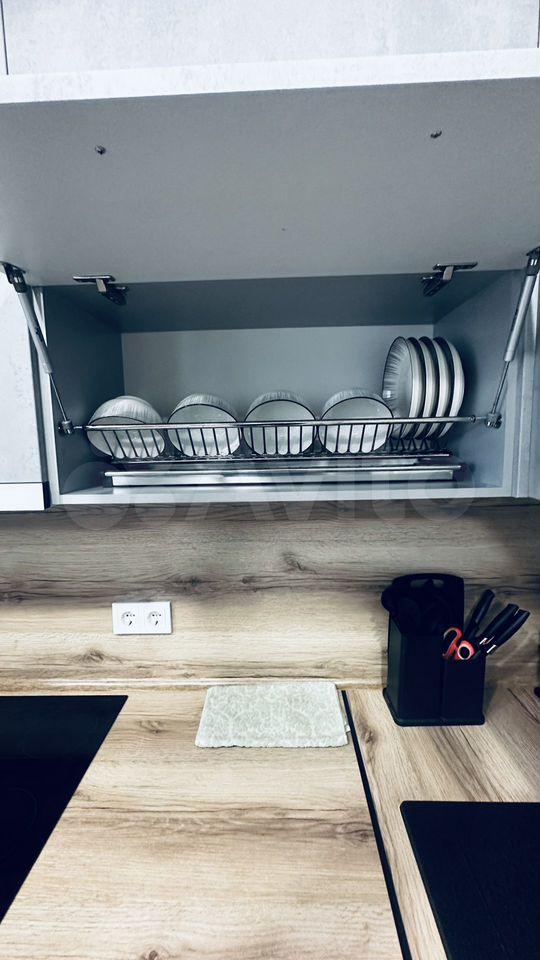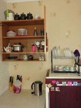 В квартире есть все необходимое для проживания: кухонный гарнитур с электроплитой и духовкой, холодидльник, стиральная машина, гладильная доска, сушилка для белья, большой шкаф для одежды, двуспальный раздвижной диван. Красивое точечное освещение.