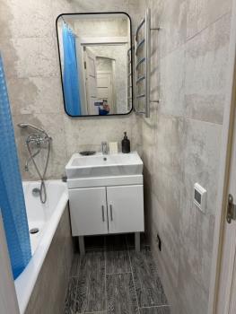 Квартира имеет современный евроремонт и полностью обставлена необходимой мебелью как в комнатах, так и на кухне. Установлена вся необходимая техника: кондиционер для комфортного климата, холодильник для хранения продуктов, телевизор для вечернего отдыха и стиральная машина для удобства. В ванной комнате установлена ванна для релаксации после рабочего дня. Высота потолков составляет 2.7 метра, что создает ощущение простора. Окна выходят на улицу, а также есть лоджия для отдыха на свежем воздухе.