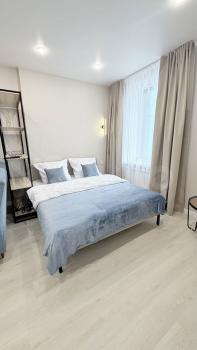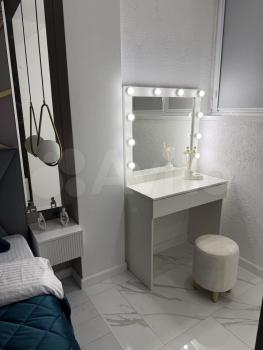 В квартире есть всё необходимое для комфортного проживания. Уютная кухня с мебелью оснащена современной техникой. В комнатах установлены кондиционеры. Ванная комната оборудована душевой кабиной, стиральной машинкой. Окна выходят на улицу, поэтому в квартире всегда светло и уютно.