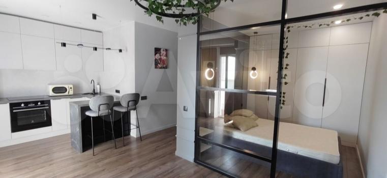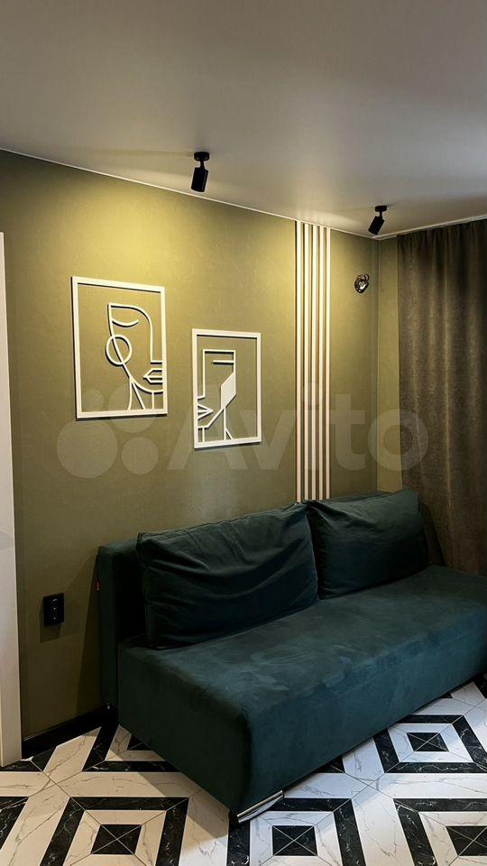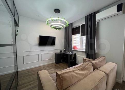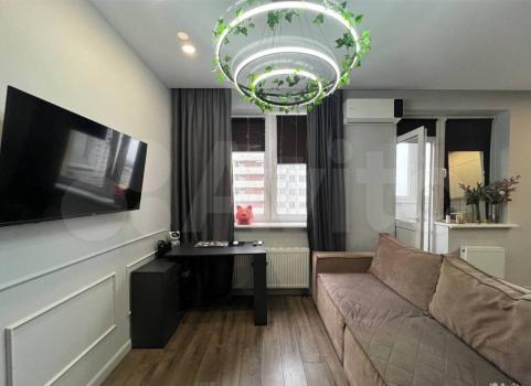 В квартире выполнен дизайнерский ремонт. Комнаты изолированные, что обеспечивает комфорт и приватность. В гостиной установлен кондиционер, имеется телевизор и диван. Из мебели также присутствуют шкафы.