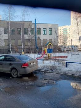 Во дворе дома каток и детские площадки.