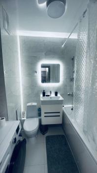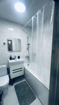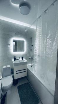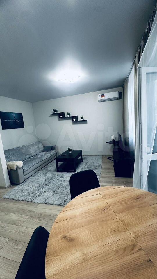 Квартира полностью готова для комфортного проживания. В комнате и на кухне есть необходимая мебель. Техника включает в себя кондиционер, холодильник, микроволновую печь, чайник и стиральную машину. Ванная комната оборудована ванной, поэтому вы сможете расслабиться после долгого дня.