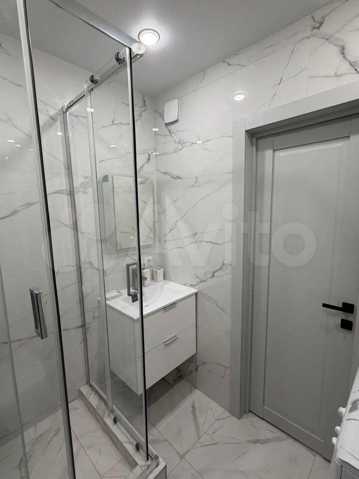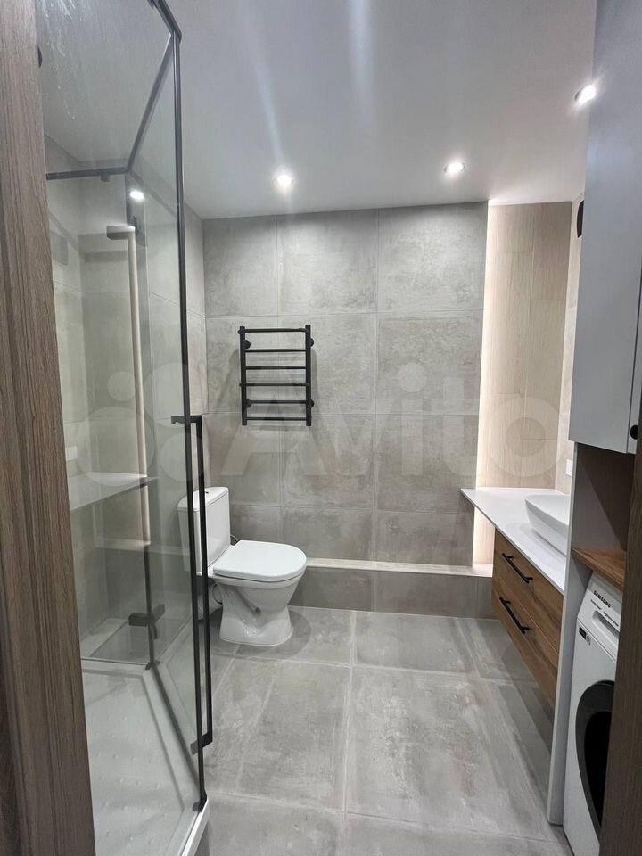 Ванная комната совмещённая, оформлена в светлых тонах с качественной сантехникой и душевой кабиной. Лоджия застеклённая, идеально подходит для отдыха.