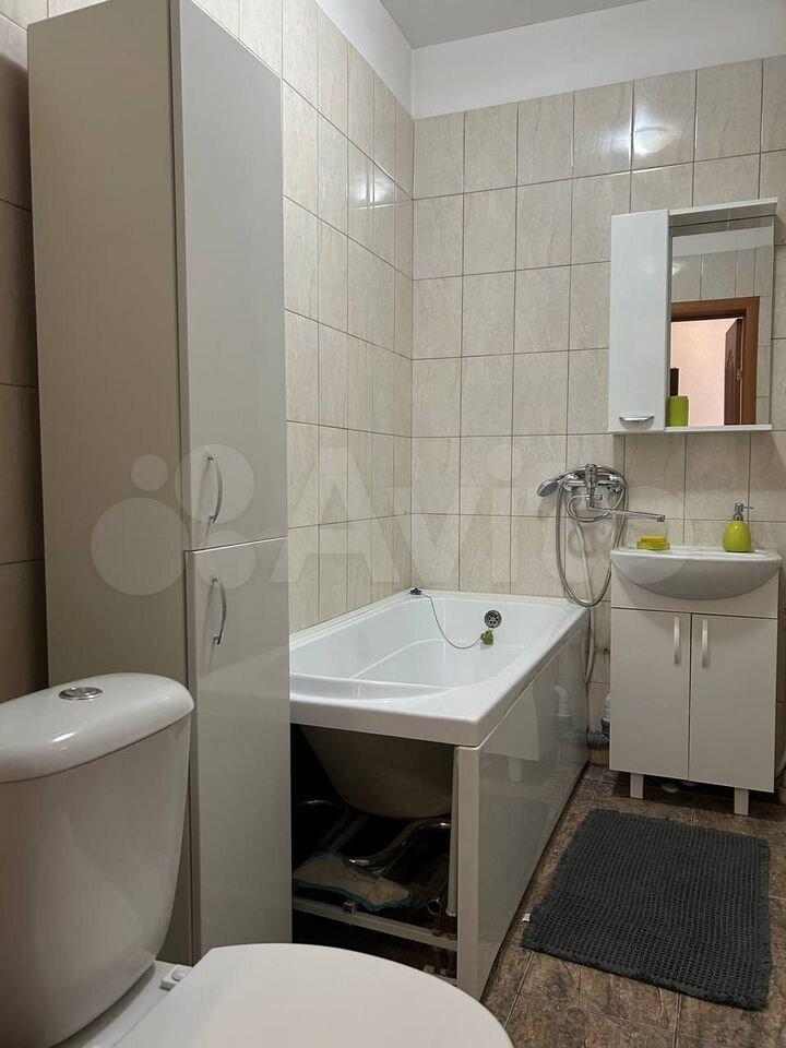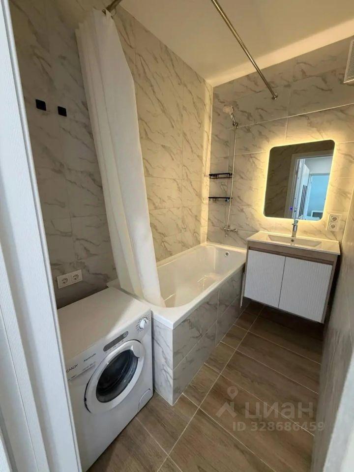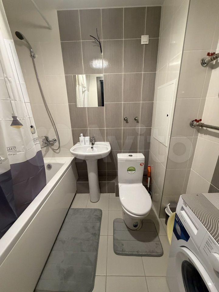 Квартира полностью меблирована и оснащена всей необходимой техникой для комфортного проживания. В комнате и на кухне есть мебель, а также установлены кондиционер, холодильник, телевизор, посудомоечная и стиральная машины. В ванной комнате установлена ванна, что особенно приятно для любителей расслабляющих процедур. Планировка квартиры включает совмещённый санузел и лоджию, где можно организовать уютное место для отдыха.