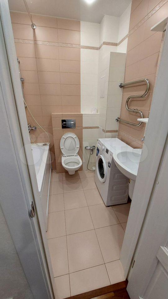Санузел совмещенный, оснащен сантехникой и стиральной машиной.