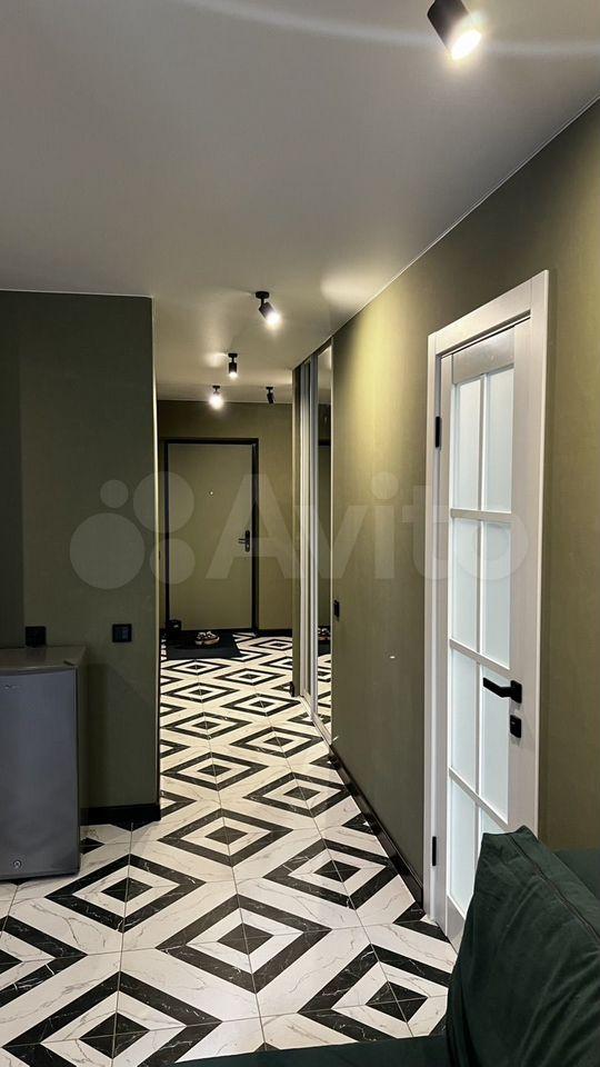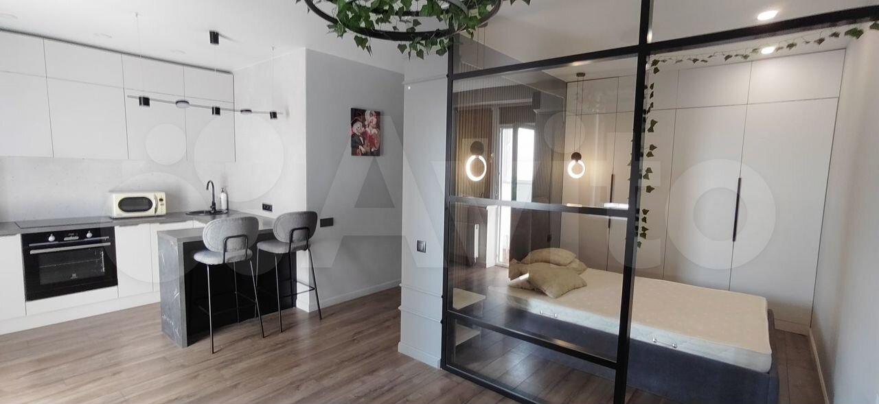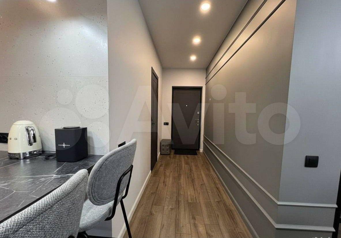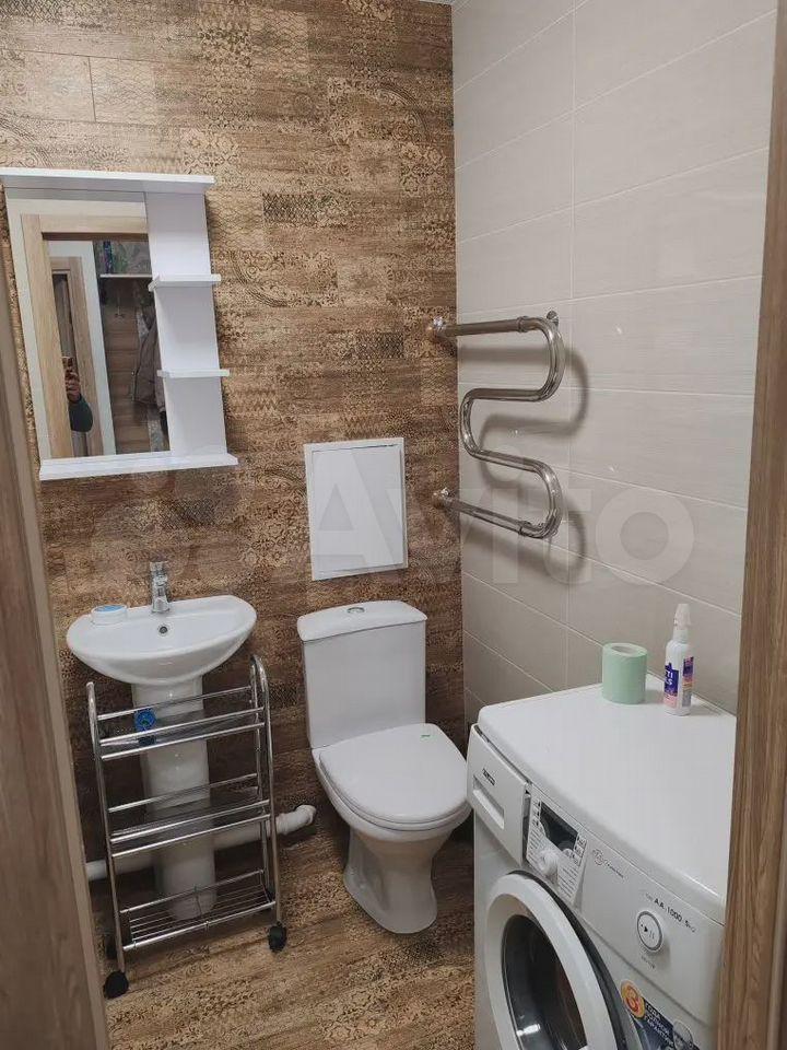 Кухня оборудована современной техникой, включая холодильник и микроволновую печь. Ванная комната и туалет раздельные, оформлены стильной плиткой.
