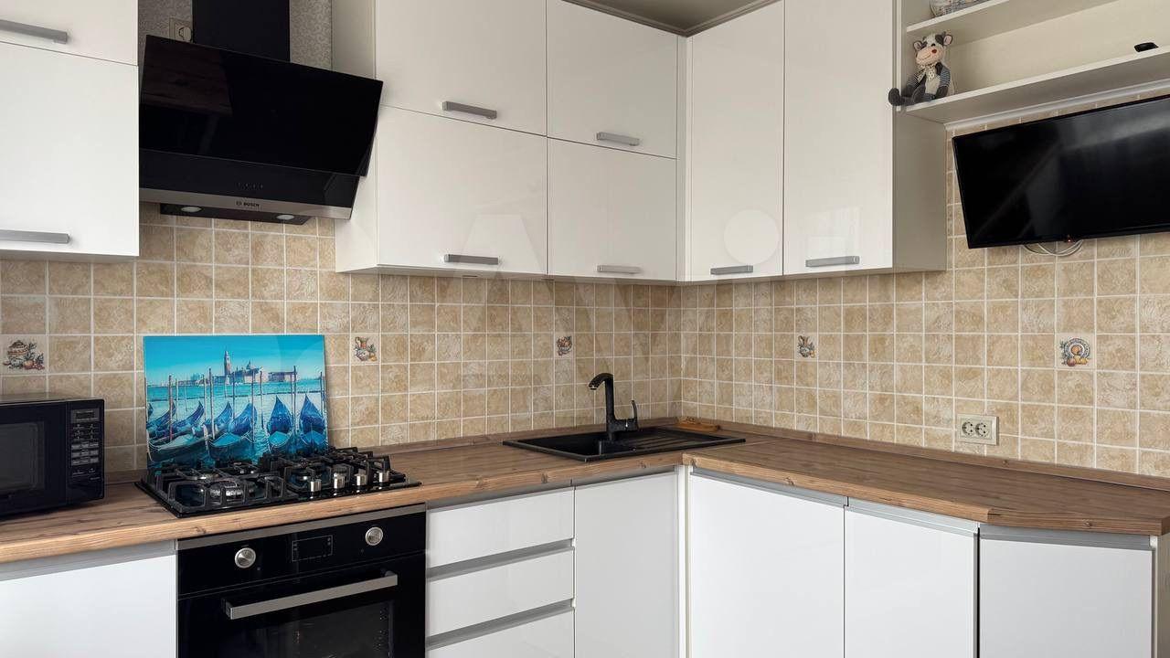 Квартира с ремонтом, обставлена мебелью на кухне и в комнате. Из техники есть всё необходимое для комфортного проживания: холодильник, телевизор , микроволновка, стиральная машина, встраиваемая плита и вытяжка все новое . Совмещённый санузел с сантехникой и ванной .