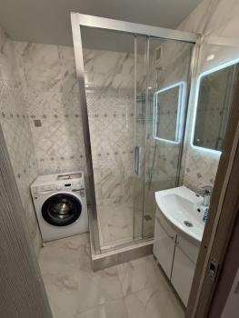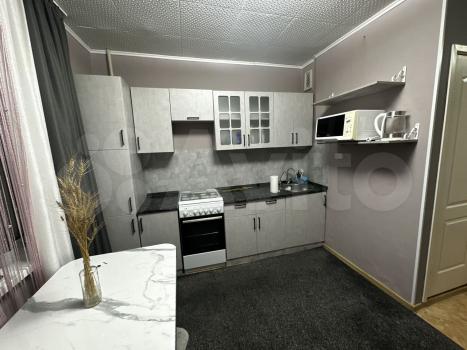 В наличии вся необходимая мебель: шкафы, диван, кровать . Из бытовой техники имеется холодильник, стиральная машина и микроволновая печь. Кухня компактная, оборудована газовой плитой и обеденным столом.
