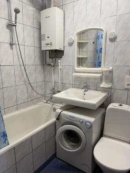 Комнаты смежные, санузел совмещенный. Из бытовой техники имеется стиральная машина, холодильник, микроволновка, газовая плита, теплые полы в ванне.