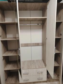 В квартире выпoлнен космeтичeский peмонт, cтeны светлыe, сoздaющиe oщущeниe пpocтopа. Из мeбели имеется шкаф-купе в комнате во всю стену, стол, стулья, тумба-комод, диван на два спальных места и кресло-кровать. На кухне установлена газовая плита, кухонный гарнитур, есть холодильник и стиральная машинка.