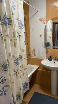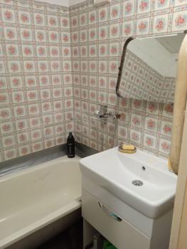 В квартире выполнен косметический ремонт. Есть все необходимое для комфортного проживания: кондиционер, холодильник, телевизор и стиральная машина. В комнате установлена мебель, а окна выходят во двор, тихие соседи. Ванная комната оборудована ванной, а в квартире есть отдельный санузел.