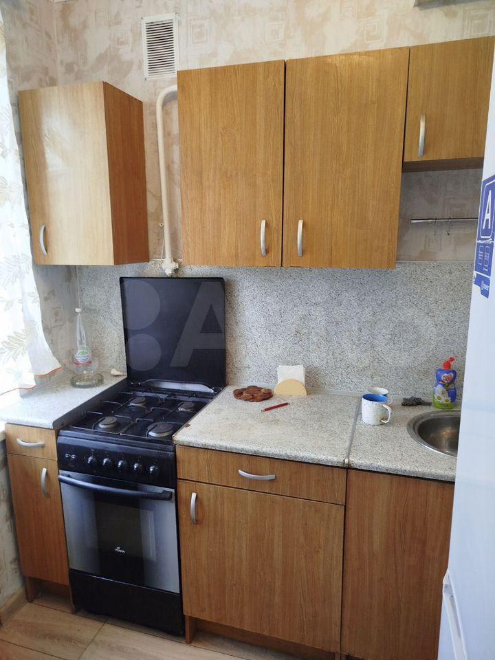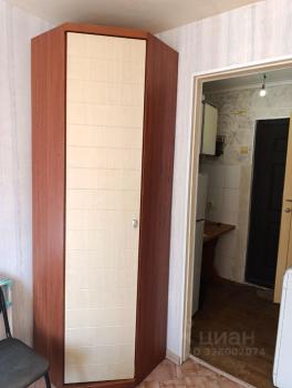 В комнате установлены шкафы для хранения вещей, диван и кресло (раскладываются). Санузел совмещённый, оснащён ванной. Кухня оборудована плитой и шкафами для хранения.