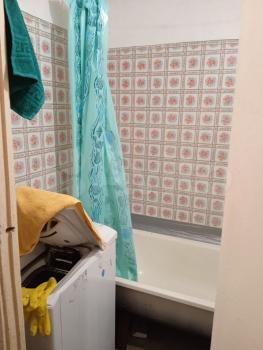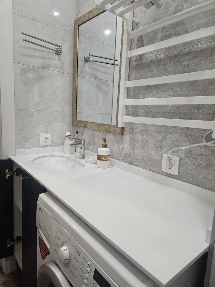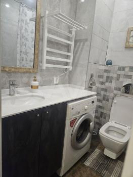 Санузел совмещенный, удобная столешница, 2 розетки, ванна, стиральная машина, раковина, инсталляция.
