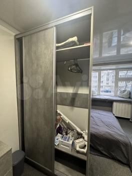 внимание! на фото другая комната, фотографии самой комнаты нет. В комнате пластиковые окна, рулонные шторы и тюль, на полу линолеум, шкаф-купе и кровать.