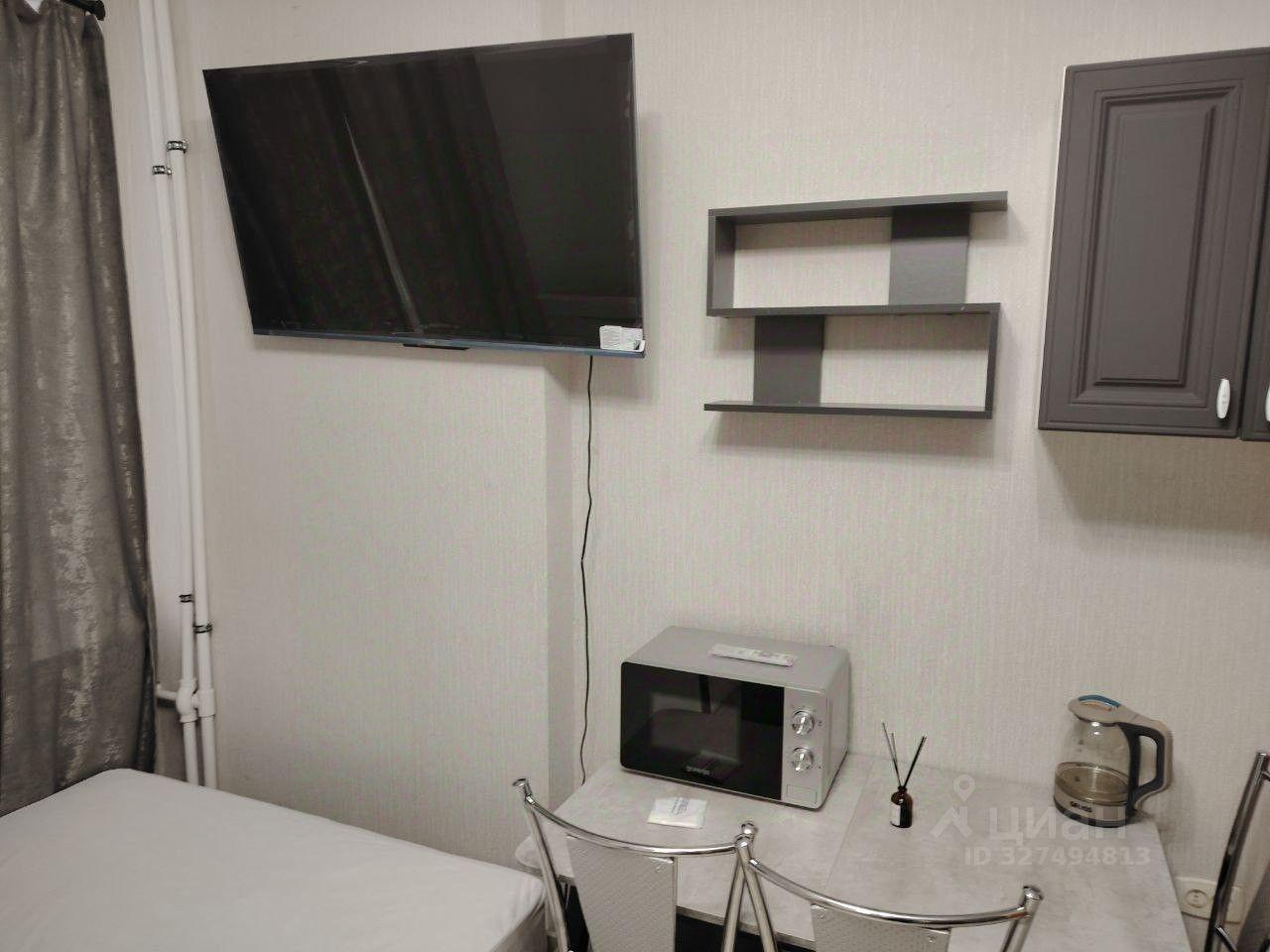 Квартира: просторная комната 23 кв. м. с широким балконом, большая кухня 10 кв.м. с новой мебелью и техникой (плита газовая, духовка электрическая, большой холодильник, вытяжка), санузел с полноразмерной ванной и стиральной машиной, в прихожей шкаф-купе. Кондиционер в комнате. На балконе садовая мебель для отдыха летом.