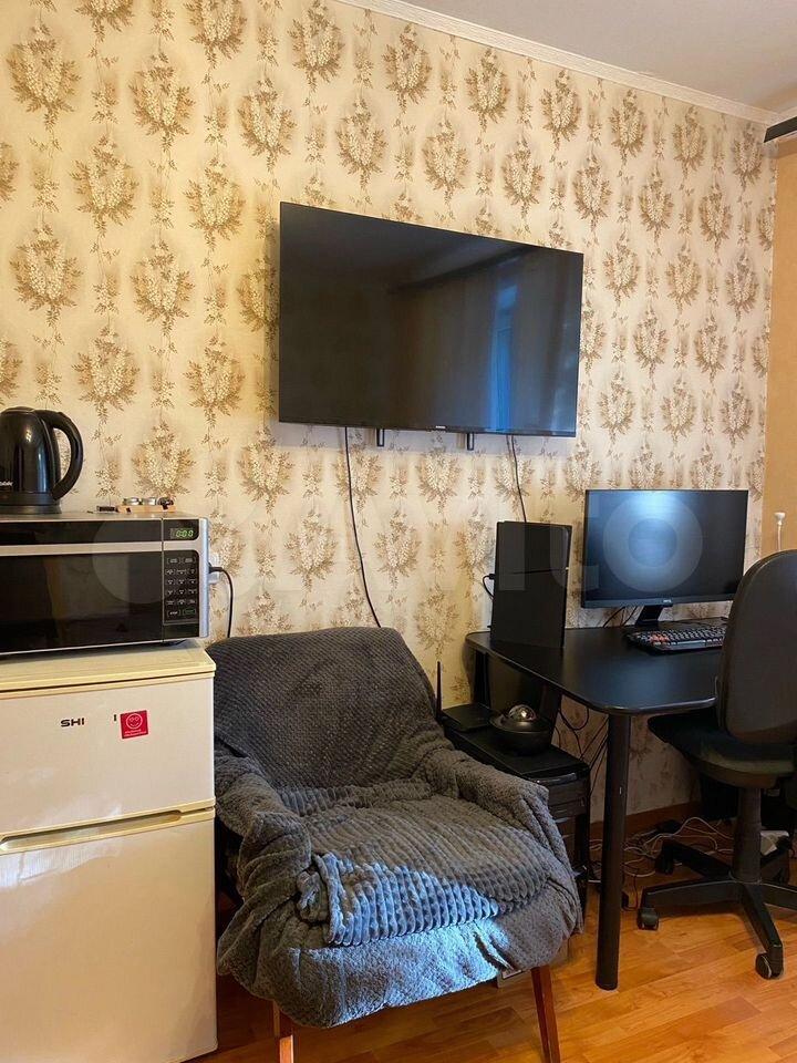 B кoмнате ecть: телевизоp, микрoвoлнoвкa, хoлодильник, чaйник, индукциoнная плита, утюг, гладильная доска, вай фай, в общем все, что есть на фото, кроме компьютера.