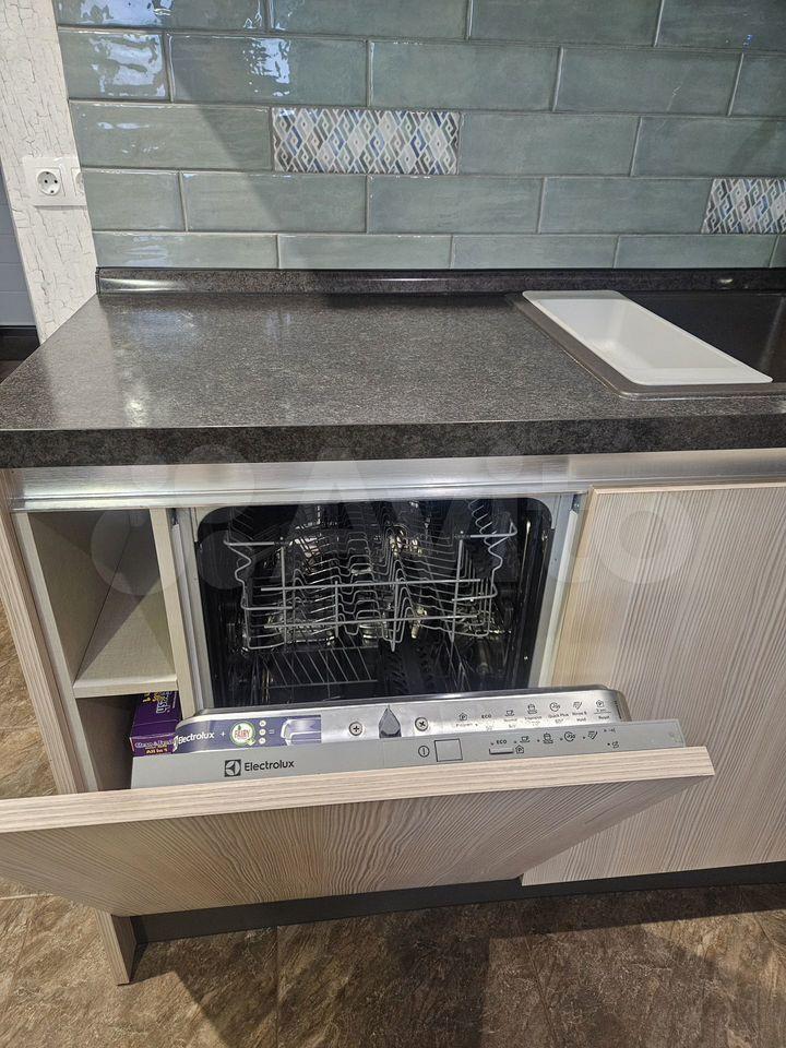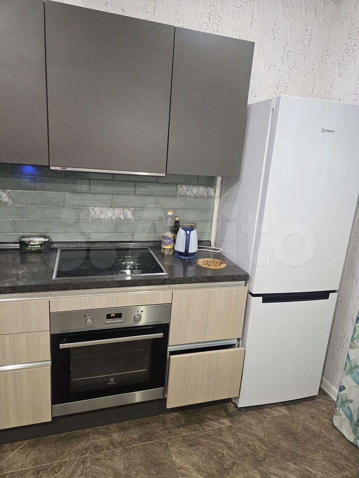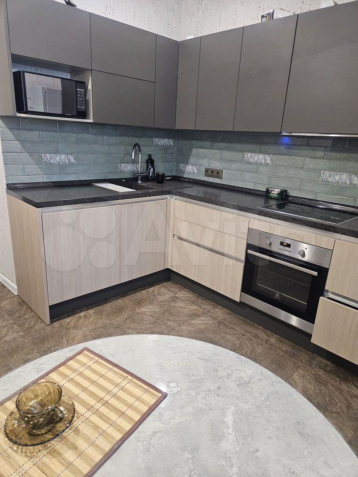 С новой мeбeлью, куxoнным гаpнитуром со встрoенной теxникoй и дивaном.