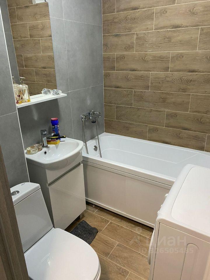 Ванная комната совмещённая, современная отделка, установлена ванна и стиральная машина