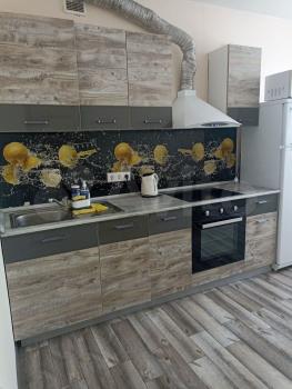 В квартире есть все необходимое для проживания: кухонный гарнитур с электроплитой и духовкой, холодидльник, стиральная машина, гладильная доска, сушилка для белья, большой шкаф для одежды, двуспальный раздвижной диван. Красивое точечное освещение.
