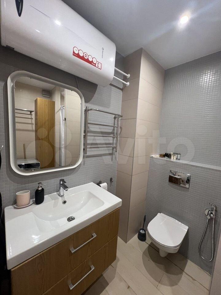 Туалетная комната позволит принять ванну , постирать бельё в новой современной стиральной машине LG.