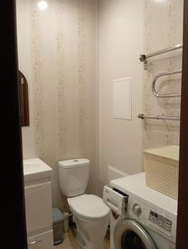 Ванная комната оборудована ванной, стиральной машиной, имеется водонагреватель. Планировка предусматривает наличие одной застекленной лоджии.