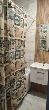 Утепленная лоджия с теплыми полами. В коридоре шкаф-купе с зеркальными дверями. Ванная комната: большая ванна. раковина с тумбой. стиральная машина (автомат).