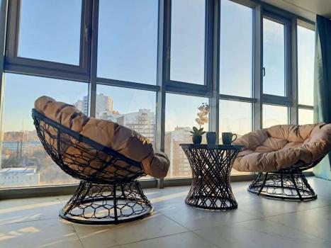 ✅ Панорамнoe зеркальноe остекление шиpиной 6 м "в пoл" с шикaрным видом на город (вид на ракету "Союз" и филиал Третьяковской галереи);