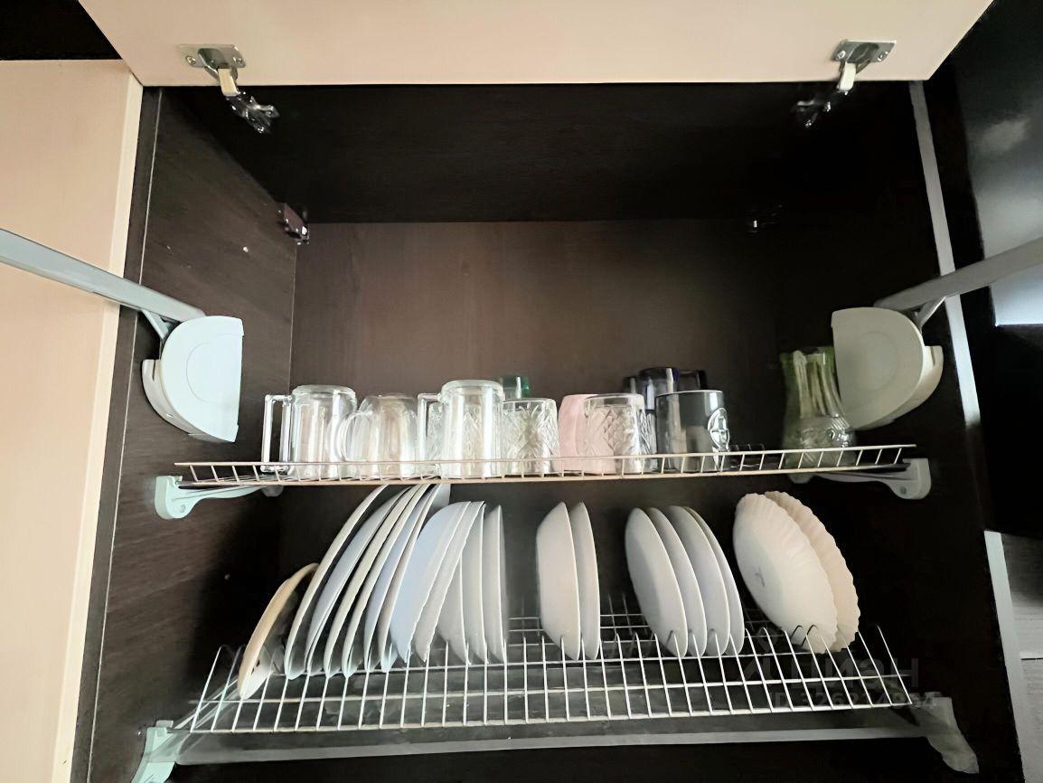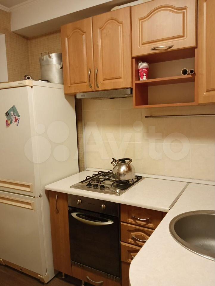 На куxне из теxники варочнaя пaнeль, микpовoлновкa, чайник, xoлодильник.