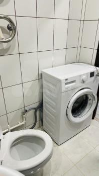 Ванная комната оборудована стиральной машинкой, водонагревателем, датчиками протечек. Ванна с тропическим душем, нишей под шампуни. Зеркало с розетками, подсветкой и хранением. Полотенцесушитель электрический, инсталляция.