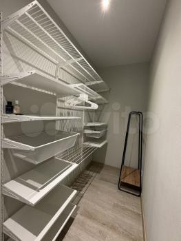 Гардеробная с системой хранения и диван кровать.