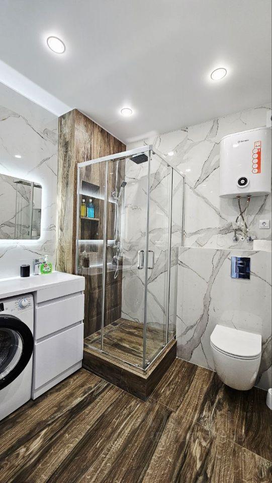 В квартире сделан евроремонт, который подчеркнёт ваш комфорт и уют. Из мебели и техники есть всё необходимое: кондиционер, холодильник, телевизор, стиральная машина, а также мебель на кухне и в комнате. Совмещённый санузел оснащён душевой кабиной, что добавляет удобства. Из окон открывается вид на улицу, а лоджия станет отличным местом для отдыха.