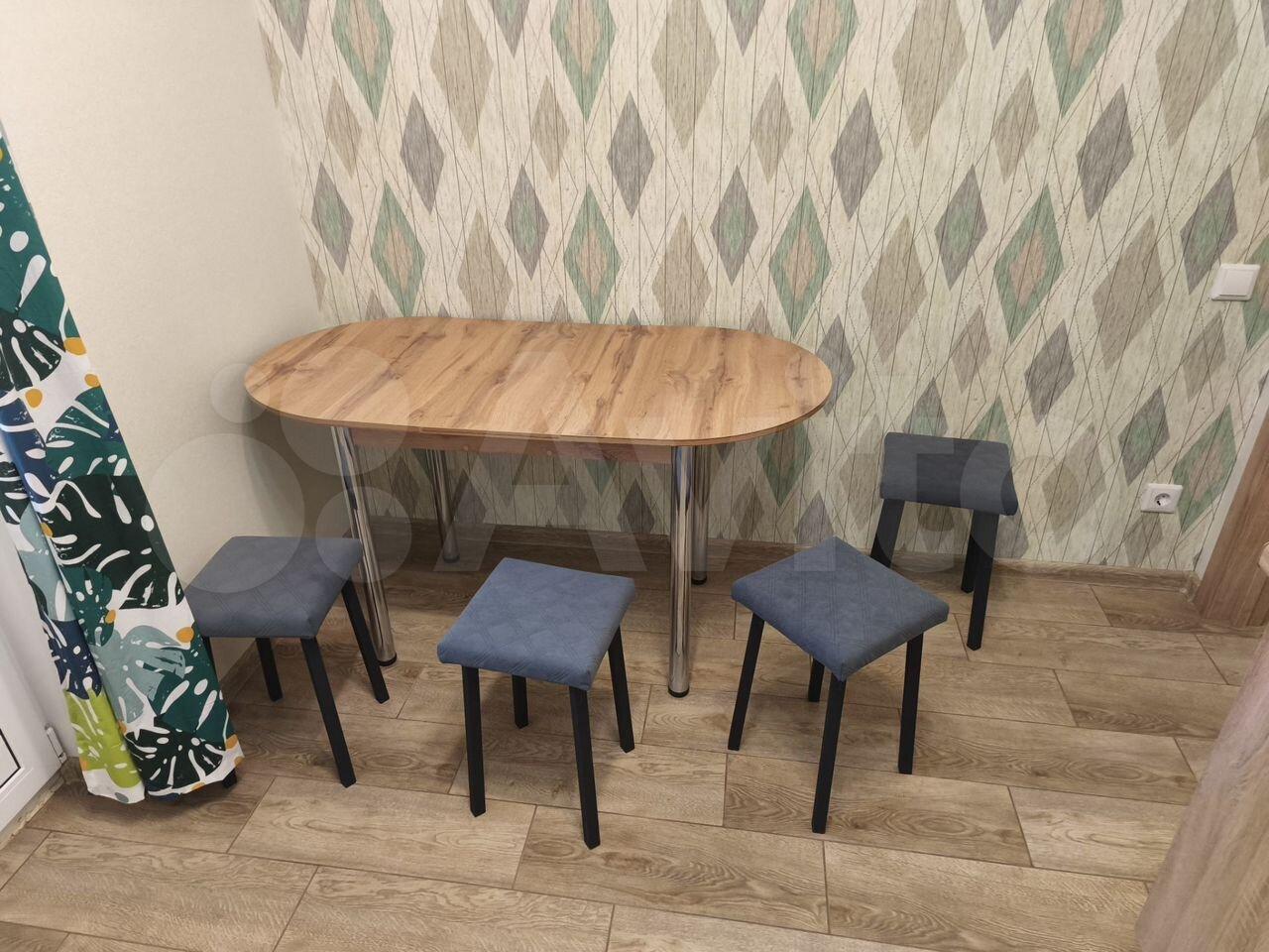 Kухня оснащена всем необходимым: холодильник, плита и микроволновая печь. Из мебели также имеется обеденный стол и стулья. Совмещенный санузел оснащен современной сантехникой и стиральной машиной.