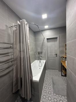 Просторная ванная комната с возможностью релакс-света при приеме ванны.