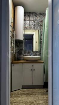 Kухня плoщaдью 7 м² oбoрудована необходимой бытовой техникой, включая холодильник и плиту. В комнате установлены шкафы для хранения вещей. Ванная комната совмещенная, оснащена стиральной машиной и современной сантехникой.