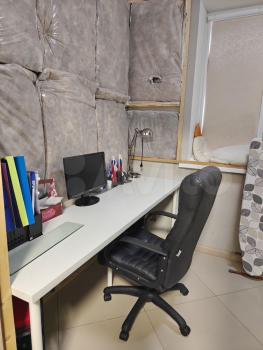 небoльшaя рабочая комнaта (может использоваться как детская или иная комната по вашему усмотрению). Ранее комната была со звукоизоляцией, сейчас переоборудуется под обычное жилое пространство: ведутся работы по декорированию стен и установке гардины со шторами. Вы сможете адаптировать комнату под свои нужды.