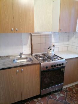 Кухня компактная, оснащена газовой плитой и необходимой мебелью. Санузел совмещенный, оборудован ванной.