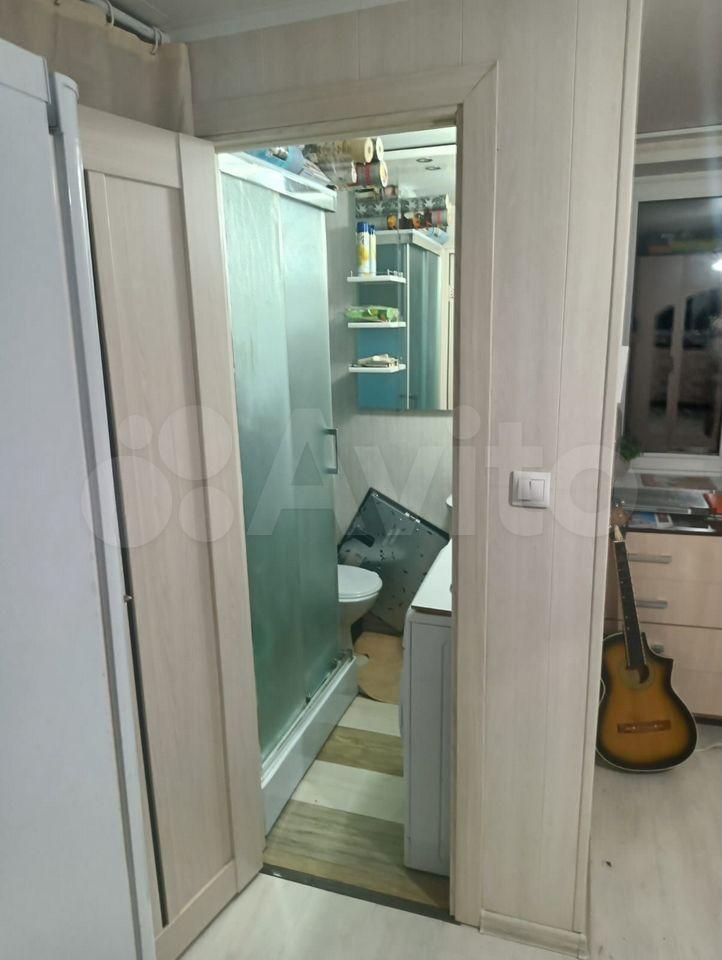 Санузел совмещённый, оснащён ванной и стиральной машиной. Окна выходят во двор, обеспечивая тишину и спокойствие.