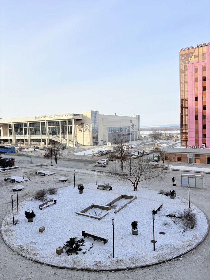 Из окон открывается прекрасный вид на дворец спорта и реку Волга.