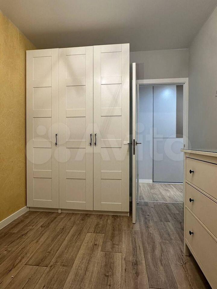 В спальне установлен вместительный шкаф, а в гостиной — большой шкаф купе с системой хранения ИКЕЯ, удобный диван и рабочая зона.